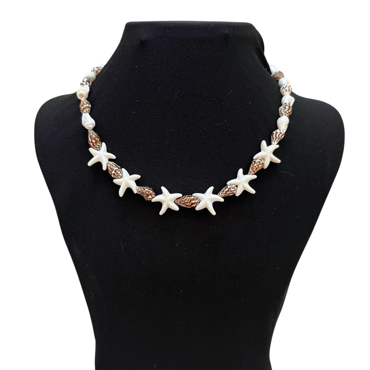 گردنبند صدف حلزونی و ستاره دریایی دست ساز